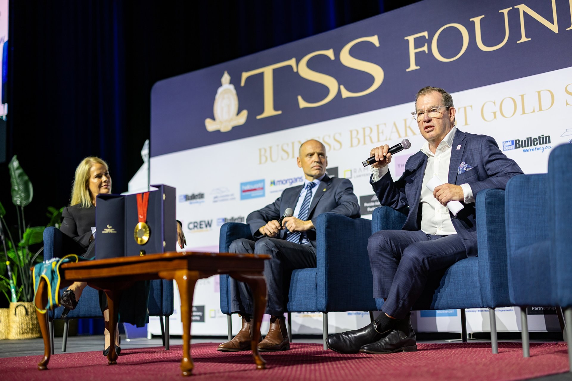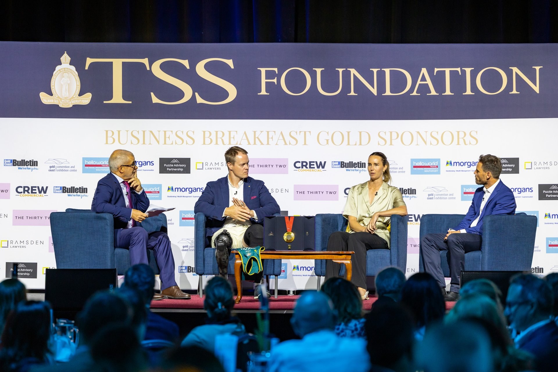 On Friday 31 October 2025, the TSS Foundation proudly hosted the Champions of Sport Business Lunch at the Gold Coast Convention and Exhibition Centre. The event brought together an exceptional panel of Australian sporting and business leaders, whose stories of excellence, resilience, and leadership captivated an audience of Old Boys, parents, staff, and friends of the School.